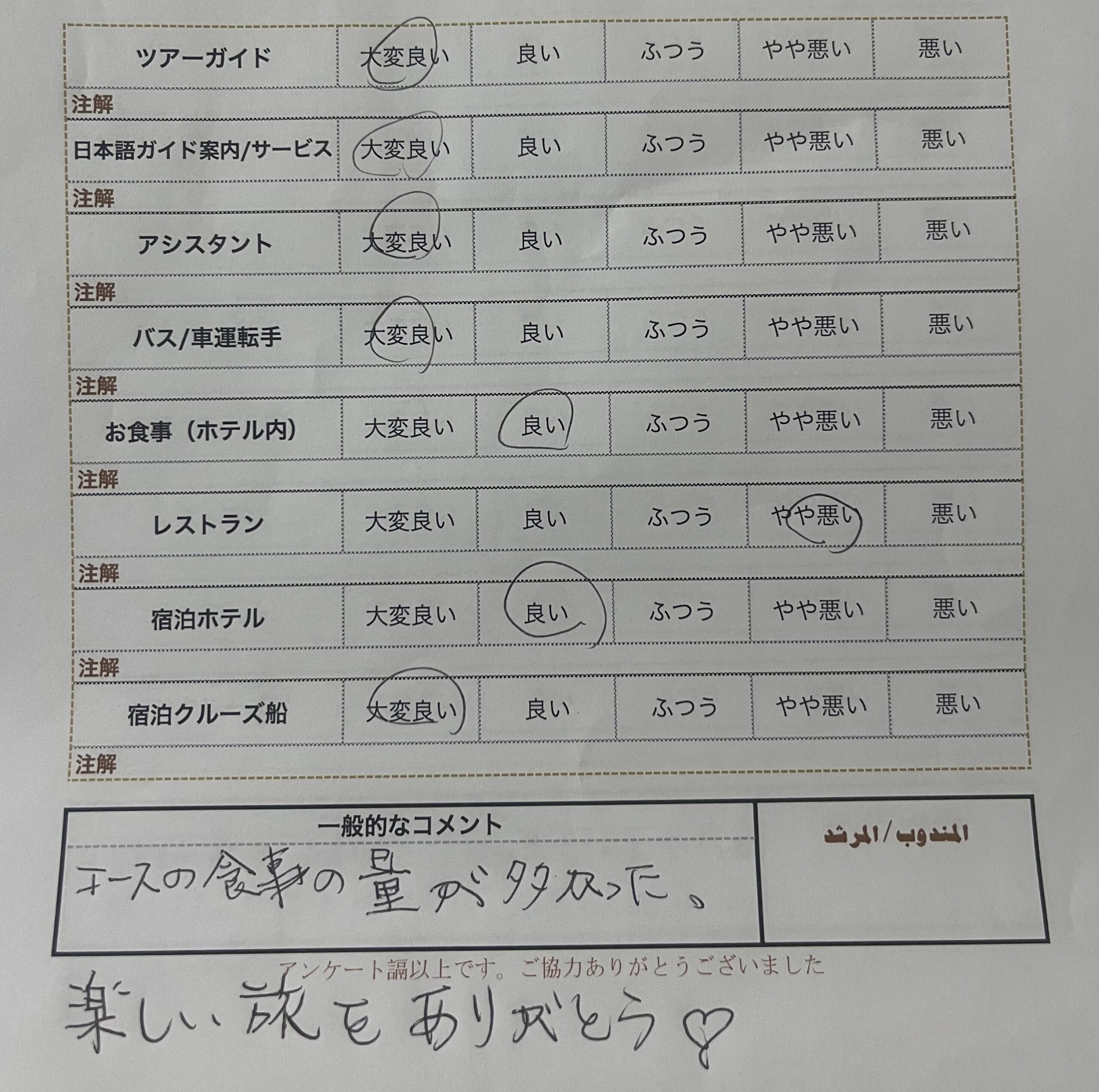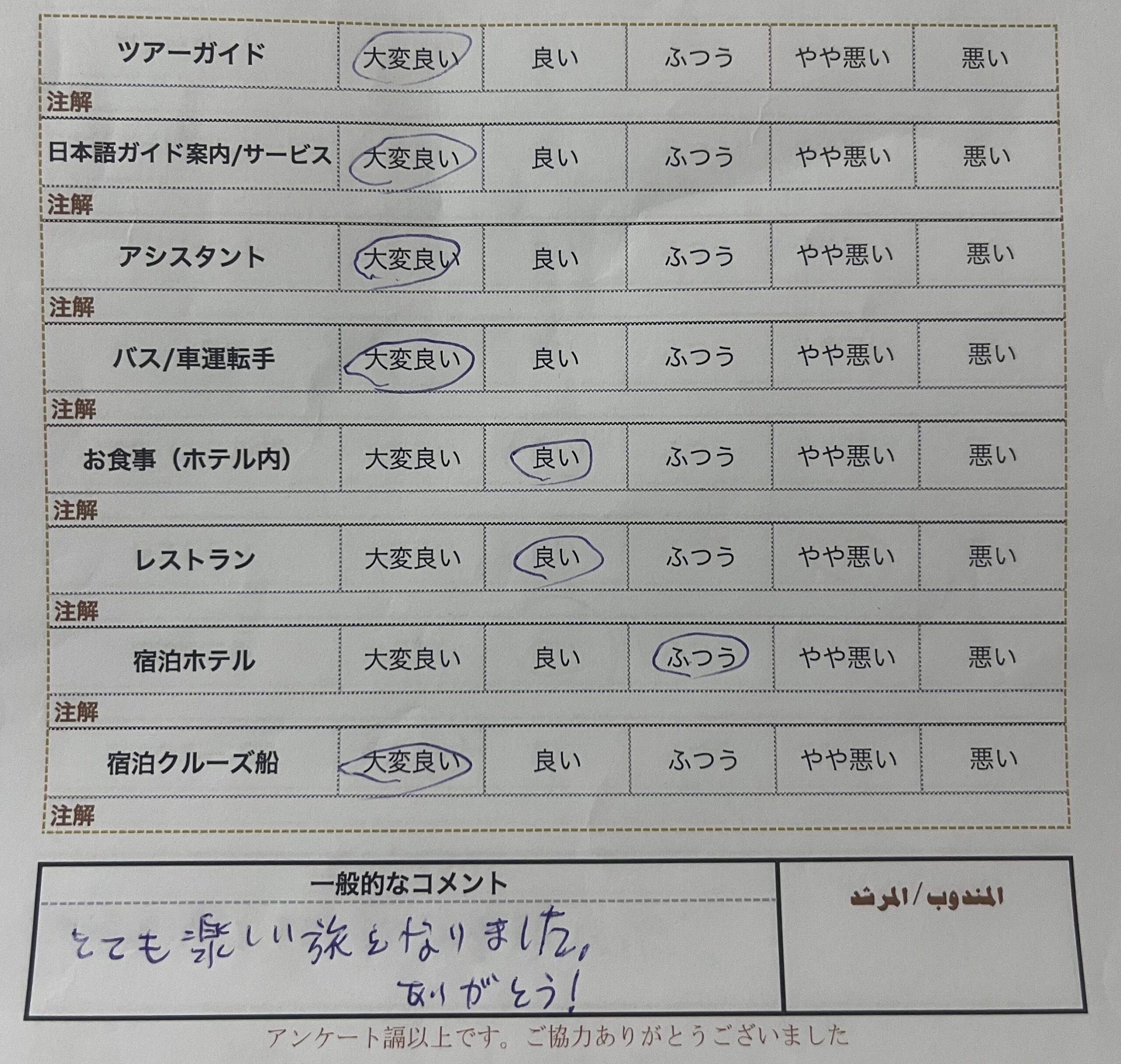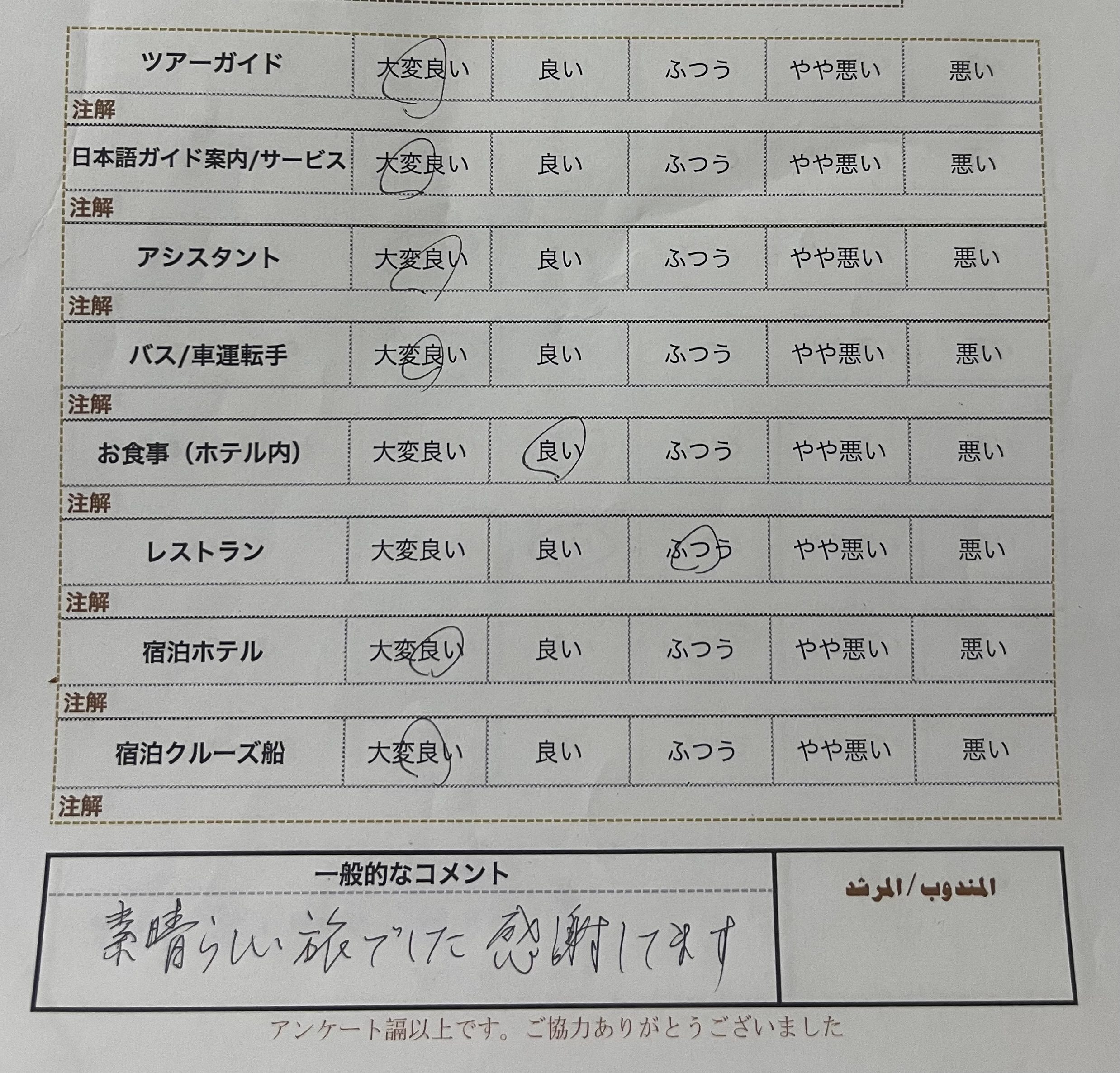 いい旅でした。ガイドも親切で、大満足の旅でした。